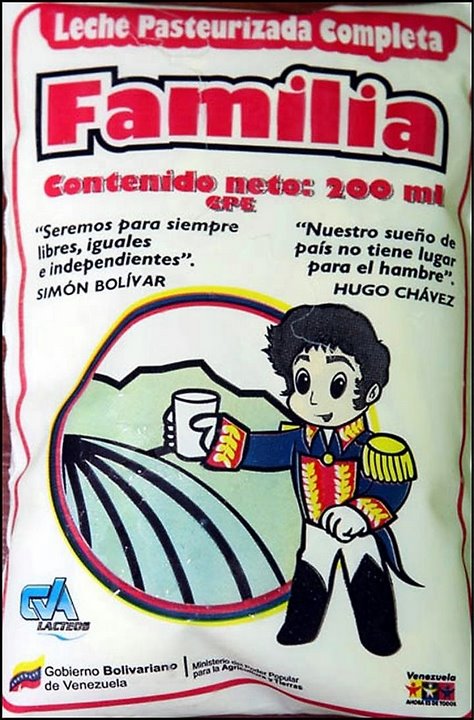 Señora, se olvidó de hacer algún anuncio en Venezuela. No sé, un plan para reactivar la venta de bolitas, o la inauguración de una playa de estacionamiento, o un programa de intercambio cultural entre bolivarianos argentinos y peronistas venezolanos, algo de eso. Ya que estoy, le muestro uno de los mayores logros de la Revolución Bolivariana: 200 mililitros de leche para todos.